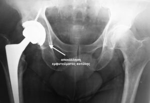 - Τοποθέτηση ανελαστικών εμφυτευμάτων κοτύλης, πάντα σε σχέση με το παρακείμενο οστούν με αποτέλεσμα δημιουργία ζώνης υψηλών συγκεντρώσεων φορτίων που προδιαθέτουν σε κάταγμα.