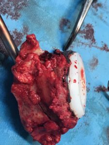 - Το αποκολλημένο εμφύτευμα της κοτύλης, με ενσωματωμένο ολόκληρο το οστικό οπίσθιο τοίχωμα της κοτύλης , μετά την αφαίρεσή τους