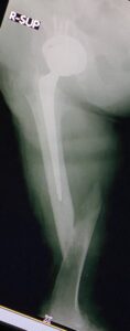 - Σε σοβαρά περιπροθετικά κατάγματα όπου υπάρχει εκσεσημασμένη απώλεια οστού και αστοχία των προηγούμενων υλικών οστεοσύνθεσης, μπορεί να αντικατασταθεί το μεγαλύτερο μέρος του μηριαίου οστού με ειδική μεγαπρόθεση που θα επιτρέψει άμεση κινητοποίηση στον ασθενή.
