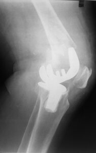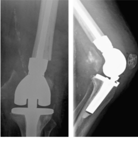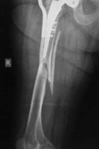 - Περιπροθετικό κάταγμα λίγο πιο κεντρικά από το πέρας του εμφυτεύματος του γόνατος