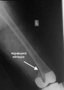 - Περιπροθετικό κάταγμα στην περιοχή του γόνατος , πολύ περιφερικό.